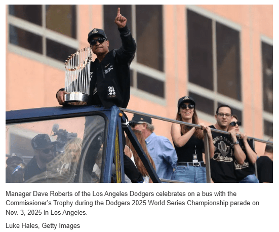 “Ice Cube and ‘Three-Peat’ Chants: Dodgers Hold World Series Parade and Party.” Fox Sports, 3 Nov. 2025, www.foxsports.com/stories/mlb/dodgers-celebrate-historic-backtoback-world-series-titles-with-downtown-parade